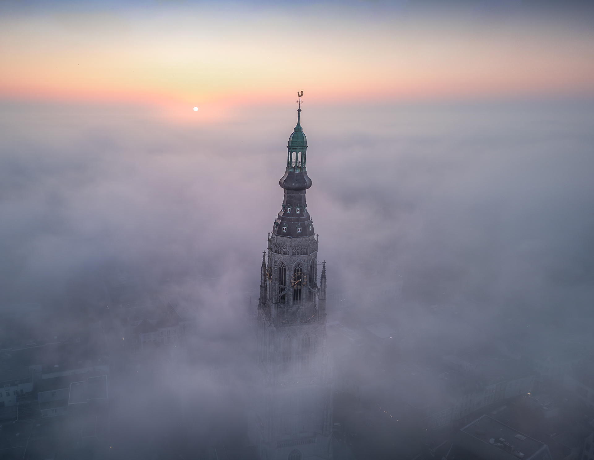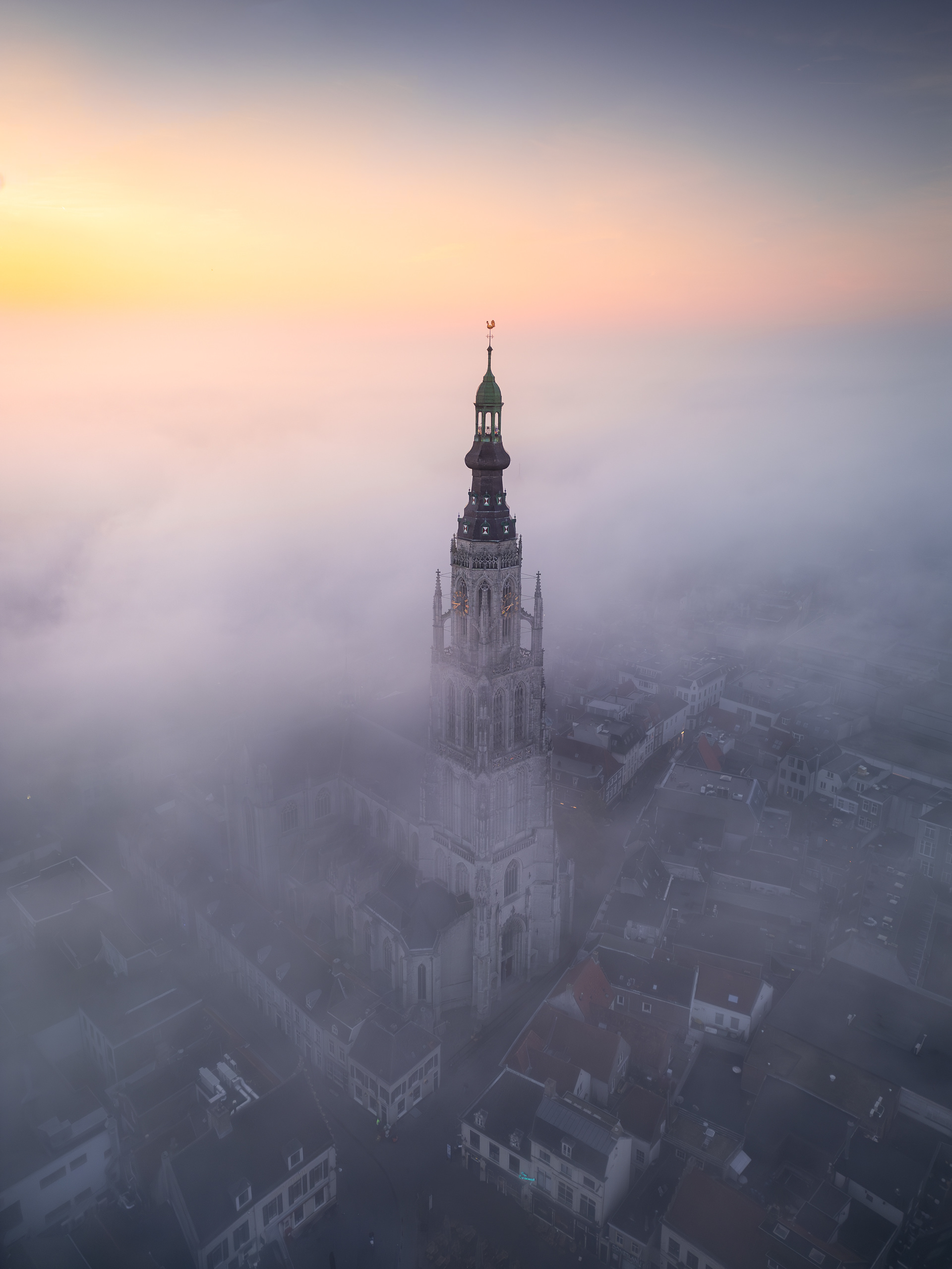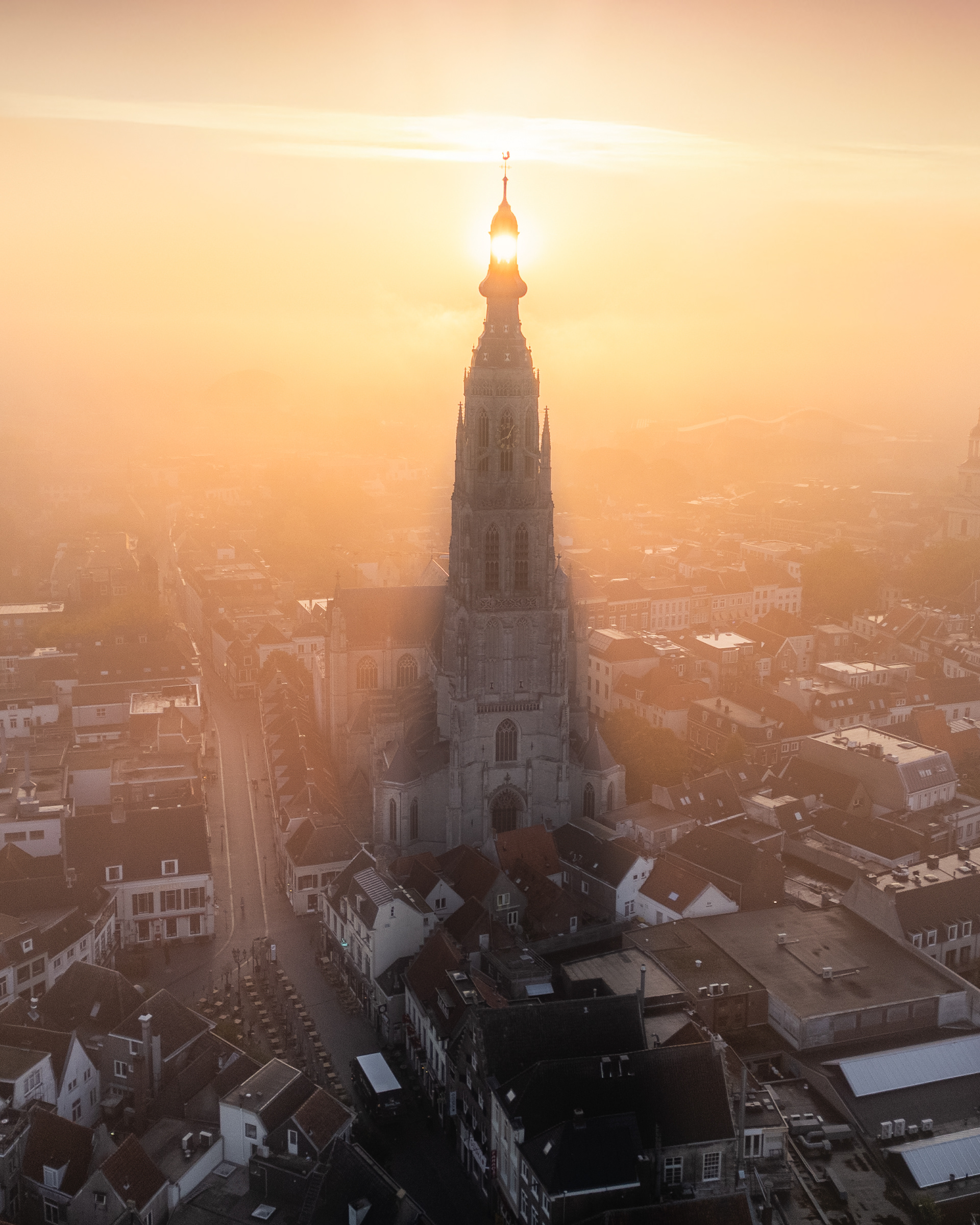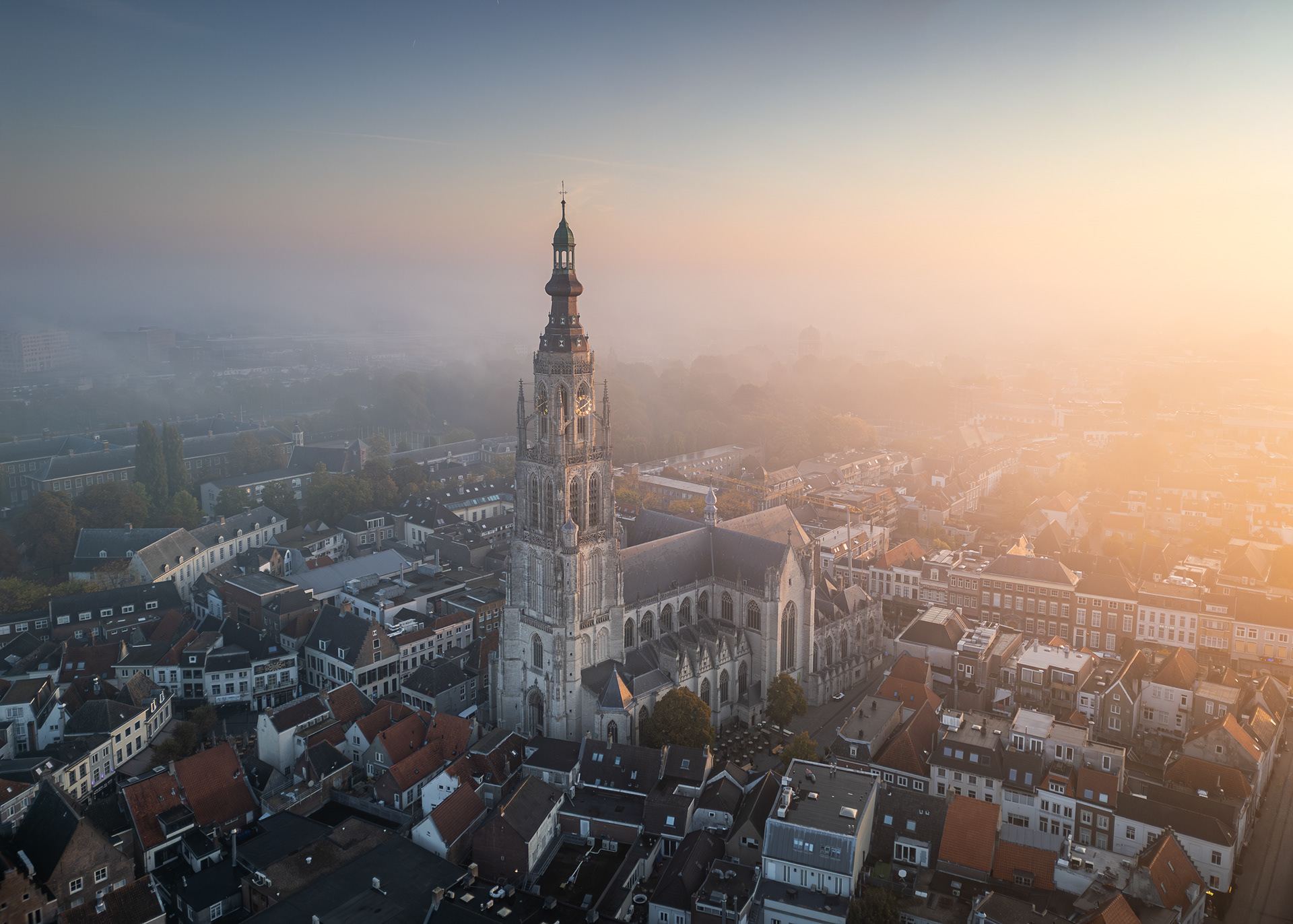 01 oktober 2025 - Tijdens één van de mooie ochtenden deze week heb ik de indrukwekkende kerktoren van de grote Kerk te Breda in de mist vastgelegd. Wat een schitterend historisch gebouw! Flarden van mist die is als een deken over de stad heen ligt... Het zorgde voor een geweldig decor. Onbeschrijfelijk hoe mooi de zon het wolkendek in kleur zette! De ochtendjes waar je het voor doet. Deze beelden zijn vastgelegd met mijn DJI Mini 3 Pro.