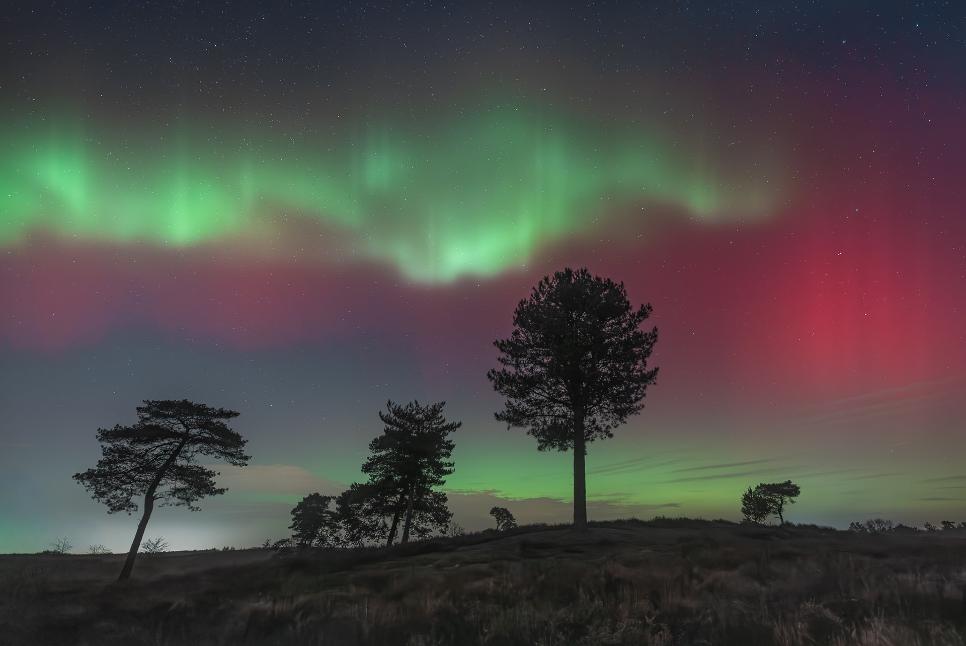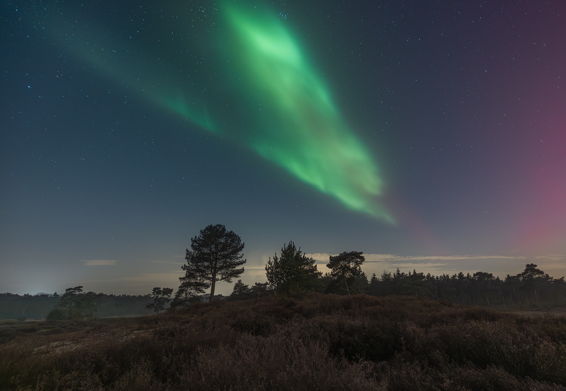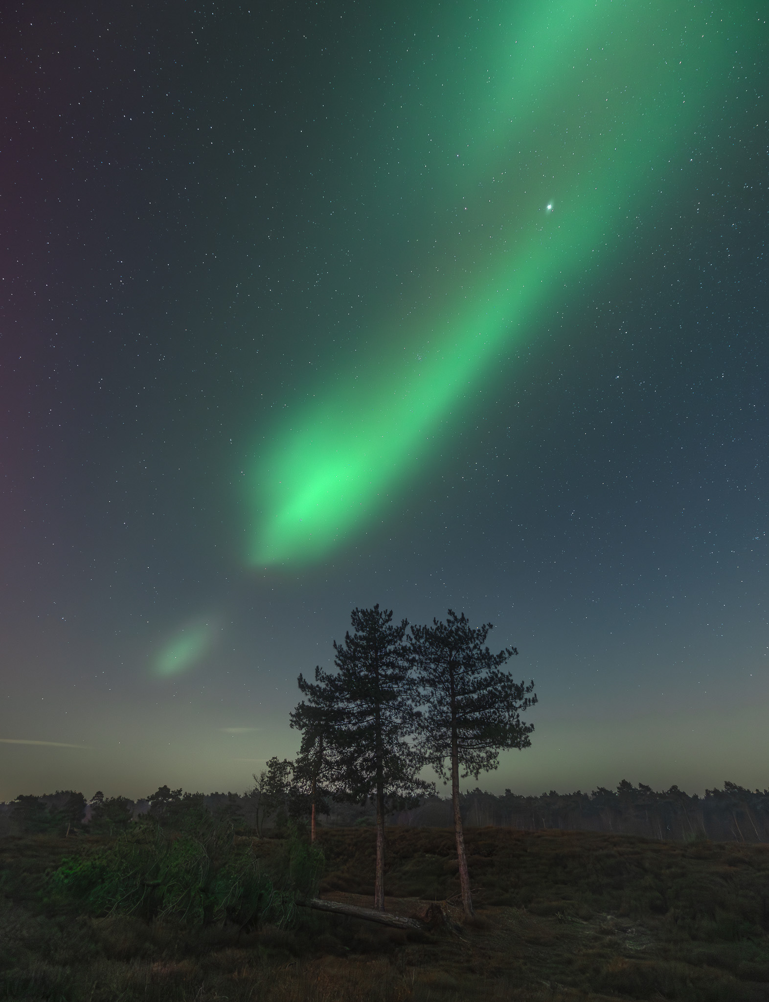 19 januari 2026 - Het zal je vast niet ontgaan zijn dat maandag 19 januari 's avonds een enorme noorderlichtshow boven ons land te zien was. Social media en de nieuwssites ontplofte met prachtige beelden. Ondanks dat wil ik graag mijn serie van deze fantastische avond delen. Op dit heideveld in Noord-Limburg keek ik met verbazing en verwondering toe, hoe een krachtige CME een sterke geo-magnetische storm veroorzaakte en het Noorderlicht activeerde. Het was overal: in het noorden, recht boven je hoofd en ik heb zelfs meerdere keren gewoon richting zuid gefotografeerd. Werkelijke een onvergetelijke ervaring!