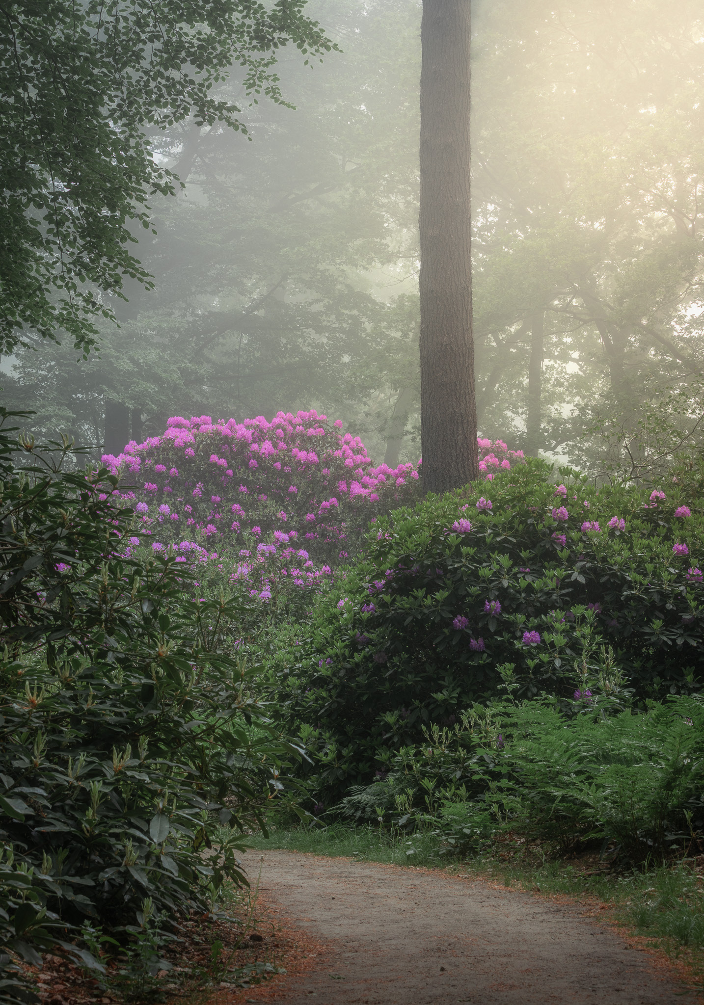 22 mei 2025 - Er zijn van die dingen die je gewoon echt heel graag wil vastleggen, maar waarbij je volledig afhankelijk ben van de omstandigheden… Bloeiende Rododendrons in een mooi boslaantje is er daar één van, maar dan met dichte mist. Dat is wat ik heel graag wilde… Vroeg de wekker, maar dan ook echt vroeg en de auto in. Aangekomen op de locatie was er op een laf mistbankje na, in de weilanden helemaal niets te ontdekken.