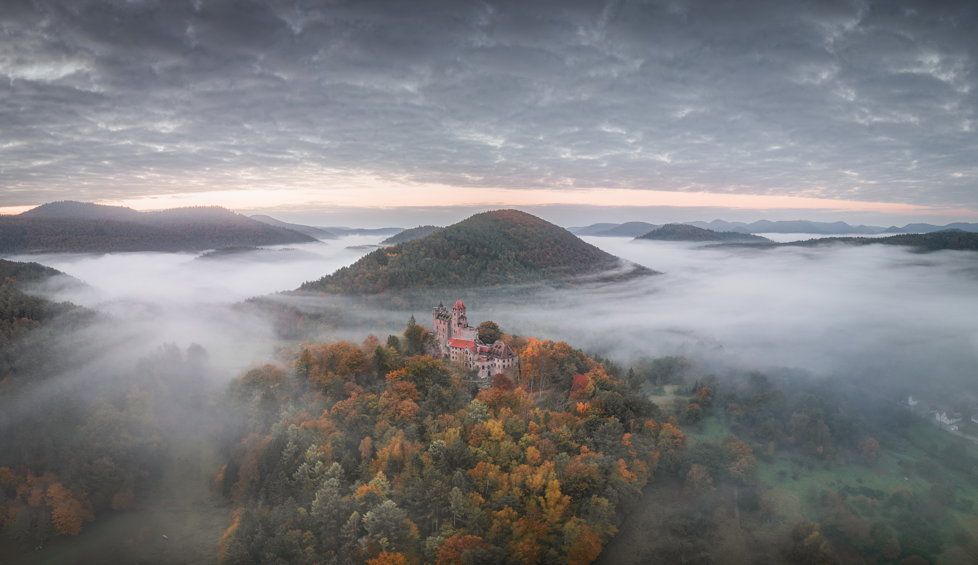 Omdat deze week het weer om zou slaan besloten Gijs en ik er het beste van te maken en zetten koers naar de Ardennen en het Pfalzerwald. Dat was zeker geen teleurstelling. Zaterdagmorgen kregen we de hoofdprijs en dat was fijn! Inversie in de dalen, piekende herfstkleuren en een prachtig kasteel wat net boven de mist uitstak… Dit was dus werk voor de drone en het leverde me onvergetelijk mooie plaatjes op! M’n doel om mooie herfstkleurtjes vast te leggen is geslaagd.